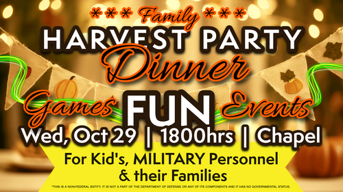 On the last Wednesday of every month at the Base Chapel from 6 pm to 7:30 pm, the sailors and their families are invited to a free dinner (6 pm) and a special, fun event to participate in (6:30-7:30 pm). We have great activities for the adults AND for the kids. This is a perfect way to get connected and build some new relationships. Stay tuned in to find out what new event will be happening each month, and come join in the fun! You'll be glad you did!
